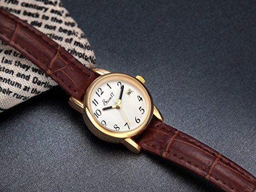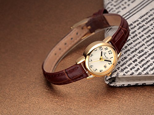 -. Title : Eamti Women's Easy Reader White Dial Brown Leather Strap Casual Analog Quartz Wrist Watches with Date