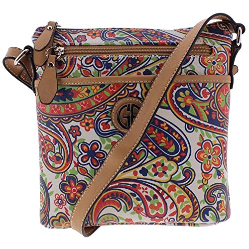 Giani Bernini Womens Saffiano Paisley Adjustable Crossbody Handbag Red Medium