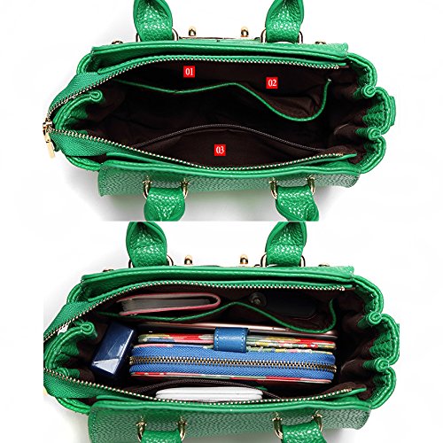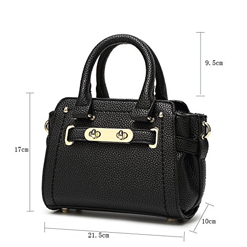 -. Feature : Material :Made of 100% of Imported PU leather / Size: W8.5 x H6.78.85 x D3.9 inch(W21.5cm x H17cm x D10cm) / Structure : Large Capacity, Front lock and Key + Strap, 3 inner pockets,1 outer pocket, 1 attachable shoulder strap / FASHIONABLE DESIGN: The Ladies Leather Satchel Bag with classic design, decent look and an attached decorating scarve is a smart choice for a stylish lady. This handbag can cross the threshold of high style when paired with a formal dress and heels, but also is minimal enough to wear to work. / It's fashion, creative, full of special means, is a very useful accessory brighten up your look, also as a gift.