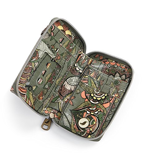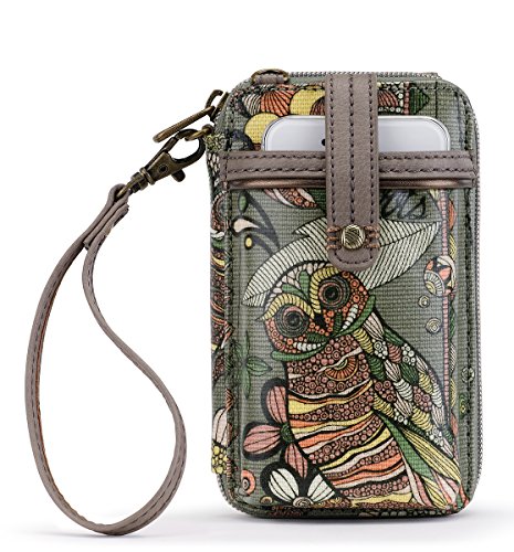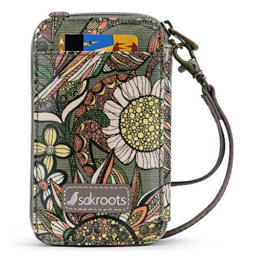 Sakroots Artist Circle Smartphone Wristlet is small and compact and perfect for touring around a new city. With a wristlet strap or crossbody strap you will always be hands-free and comfortable. Slip your phone inside the snap closure pocket while keeping cards and bills safely in a zippered pocket.