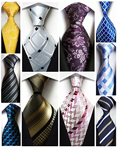 Wehug Lot 10 PCS Men's Ties 100% Silk Tie Woven Jacquard Neckties Classic Ties