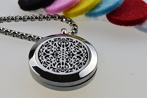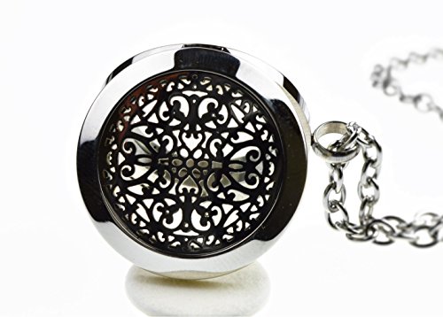 Wrought Iron Essential Oil Diffuser Necklace Stainless Steel Locket Pendant with 24" Chain, Oil, and pads in Gift Box