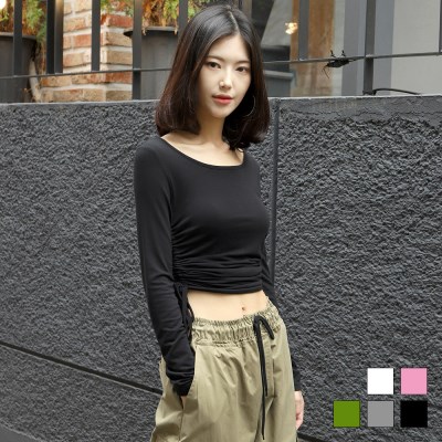 양쪽 사이드라인의 셔링을 잡을 수 있는 매듭으로 길이와 디테일을 유니크하게 만들 수 있는 티셔츠입니다 :-) 연출에 따라 매듭으로 길이를 조절해서 다양하게 매치하실 수 있어요!