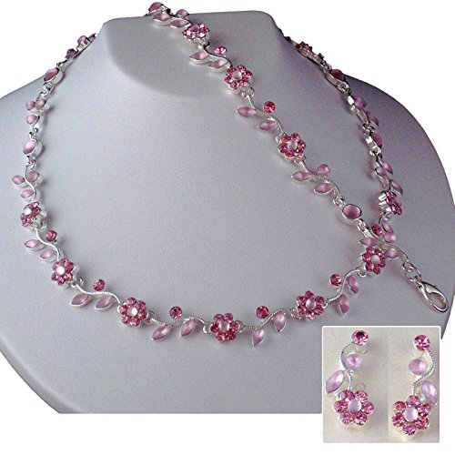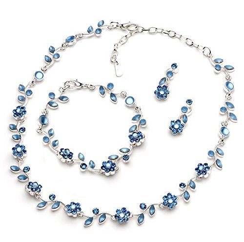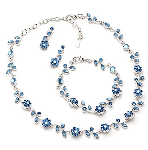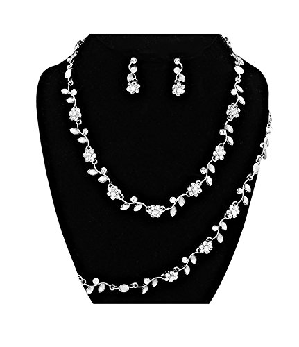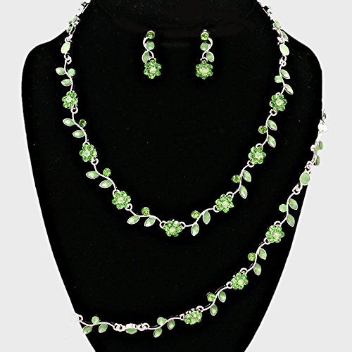 -. Feature : Bridesmaid Jewelry Set. Flower, vine and leaf pattern in sparkling austrian crystal / Necklace extends 14" to 17" long / Bracelet is 7 1/4" long, perfect match steel post earrings are 1" long and create lovely movement & sparkle / Silver plated, nickel and lead free / Nicely boxed (WT)