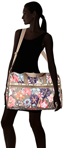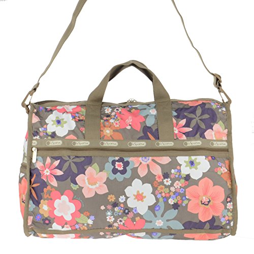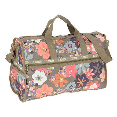 A dotted print accents this practical LeSportsac duffel. Logo-print grosgrain trims the seams, and 4 zip pockets flank each side. Lined. Double handles and optional, adjustable shoulder strap. This large weekender from LeSportsac will conveniently hold all of your things while keeping your style in play. Its roomy interior and loads of zippered compartments offer a great solution for weekend getaways, and would make the perfect carry-on. See all Product description