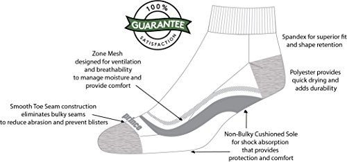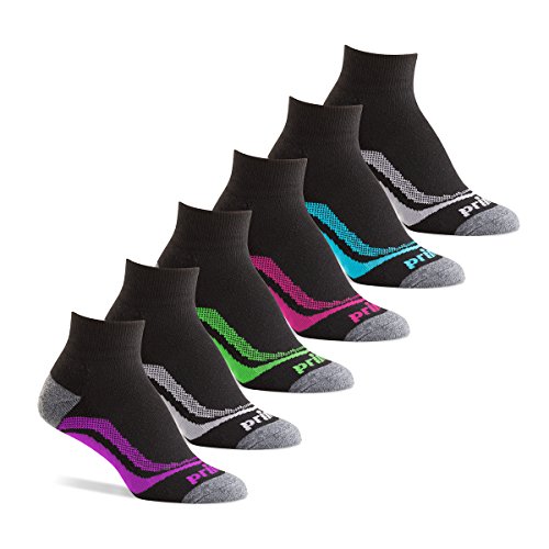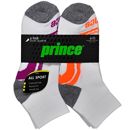 -. Binding : Apparel -. Brand : P.R.Ince -. Department : womens -. Feature : PREMIUM COMFORT FIT: Spandex blend forms to the foot and provides superior shape retention / CUSHIONED SOLE: Non-bulky for shock absorption that provides protection and comfort / BREATHABLE: Zone mesh design coupled with a lightweight polyester blend increases ventilation to control moisture and keep feet cool and dry / SMOOTH TOE SEAM: Provides a seamless feel by eliminating bulky seams to reduce abrasion and prevent blisters / 100% SATISFACTION GUARANTEE: -. IsAdultProduct : 0 -. ProductGroup : Apparel -. ProductTypeName : SOCKSHOSIERY -. Title : P.R.Ince Women's Short Quarter Length Athletic Socks with Cushion for Running, Tennis, and Casual Use (6 Pair Pack)