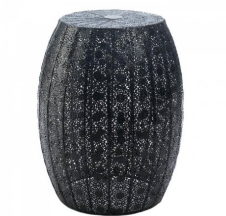 Studio : SKB Family Publisher : SKB Family Binding : Kitchen Product Description SKB Family Black Moroccan Lace Stool Home Accent room decorative intricate dazzling display Metal Looking for a glamorous room accent with serious "wow" factor? This is it! This marvelous Moroccan style decorative stool features an intricate and dazzling pattern and is a luxurious side table, display stand, or stool. Place it indoors or outside and admire its glamorous black designs. Item weight: 3.80lbs Item dimensions: 11.13" W x 14.75" H x 11.13" L Materials: Metal