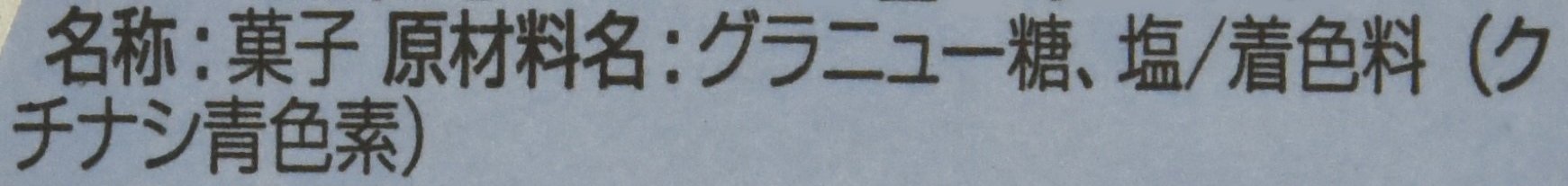Granulated sugar, salt, coloring (gardenia blue pigment)