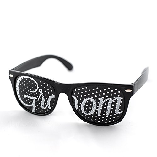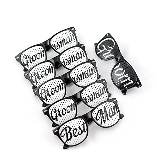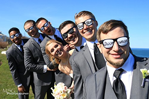 Groom Party Wedding Sunglasses - Perfect Favors for Bachelor Parties, Receptions, Pictures, and Photo Booths (1x Groom, 1x Best Man, 4x Groomsman, Black and White)