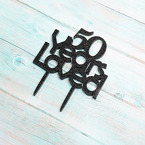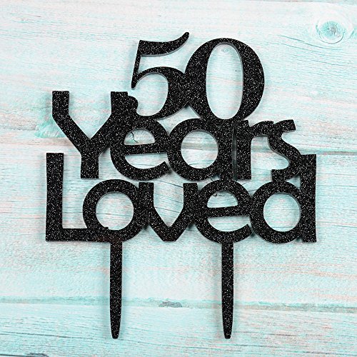 50 Years Loved Cake Topper, Black Color Arcylic Cake Decors for 50th Birthday Party/the 50th Wedding Anniversary