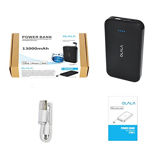 -. Binding : Wireless Phone Accessory -. Brand : OLALA -. Color : Black -. EAN : 0714819130727 -. Feature : The built-in Apple Lightning Connector has been licensed by Apple so it is 100% compatible with Apple new iphone SE, iphone 6s plus, iphone 6s, iphone 6, iphone 5, ipad air, ipad mini devices and it means you don't need to bring an extra cable. / Compatible with Android: The Separate USB outport 2.4A not only for charging Android Samsung Galaxy S7, Galaxy S6, HTC, LG and more usb charged devices, but also for charging Apple Devices. Note need to plug in your own charging cable. So the dual output enables you to charge two devices(iPhone/iPad + Android phone/iPhone) at full speed simultaneously. / The high capacity of 13000mAh ensures your Apple devices fully charged whenever and wherever. / Premium microchips create high-quality portable charger with 7 layers of smart safety protection circuit; offering 500+ recharge cycles over the life of the battery. / What You Get: OLALA MFi 13000mAh Portable Charger, Micro USB cable, User Manual, our fan-favorite 18-month warranty and friendly customer service. -. Label : OLALA -. Manufacturer : OLALA -. PackageQuantity : 1 -. ProductGroup : Wireless -. ProductTypeName : WIRELESS_ACCESSORY -. Publisher : OLALA -. Studio : OLALA -. Title : [Apple MFi Certified] OLALA 13000mAh Portable Battery Charger Built in Lightning Cable Power Bank for iPhone,ipad, 2.4A USB Port for Android and More (Black) -. UPC : 714819130727