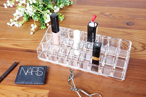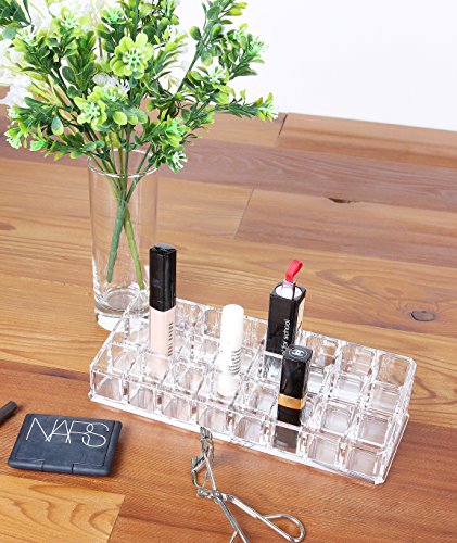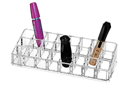 Clear Acrylic Cosmetic Organizer - Lipsticks, Mascara, Primers, Make-Up Tubes - 24 Compartments