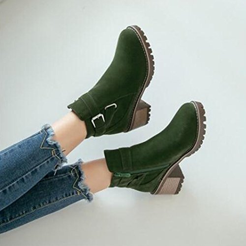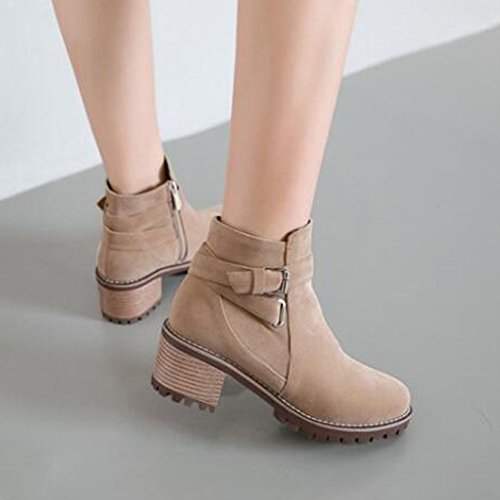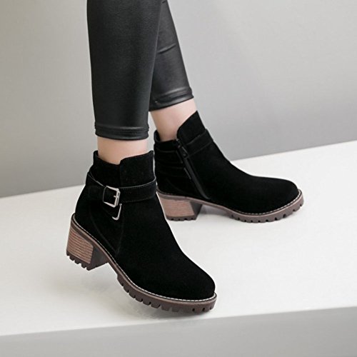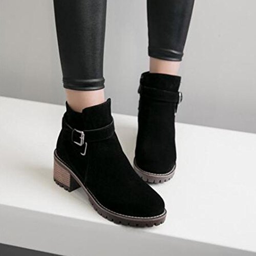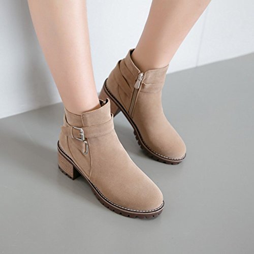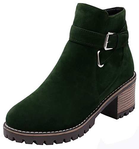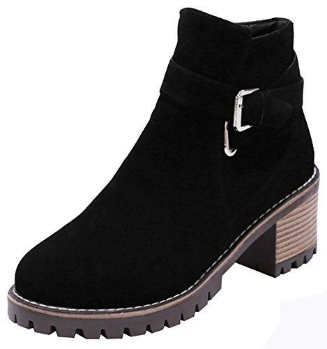 (Mofri)/Women's/Boots/DIRECT FROM USA/Mofri Women's Retro Faux Suede Buckle Cross Strap Side Zipper Short Boots Stacked Block Medium ...