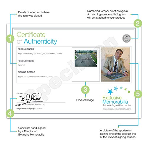 At Exclusive Memorabilia we unconditionally guarantee all our signed items are genuine. Your item will come with a certificate of authenticity showing the sportsperson at the signing session and signed by a company director. The certificate features a numbered hologram that matches an identical hologram affixed to your product.