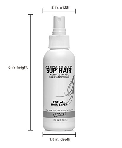 Verseo Sup Hair's unique, effective hair regrowth formula is specially designed to work for all hair types. The product's potent ingredients penetrate the hair follicles for rapid hair growth and healthy scalp. Verseo Sup Hair addresses the root cause of hair loss, restoring your hair's volume and strength. Clinical tests show that Sup Hair accelerates hair growth by up to 69%, and can reduce hair loss by up to 75%, all in less than three months. This product is proven effective and is an economical alternative to Rogaine. Easy and quick to use, simply apply Sup Hair directly to dry hair and scalp once a day. Massage gently and evenly to all areas of the scalp to ensure a uniform application. Unlike other brands, there's no need to rinse the hair after application. The human hair goes through 3 phases in its life cycle: growth (anagen), rest (catagen) and loss (telogen). At any given time, 90% of your living hair is in a growth phase. If your existing hair continues to grow in length (that is, it requires cutting), then at least some of your hair is still in growth phase. Sup Hair helps to fortify the hair growth process and strengthens new hair growth. Solution for thinning or damaged hair is now at your fingertips. Sometimes you may experience unusual hair loss after chemical treatments like bad perm or bleaching. Often, the problem is sun and chlorine damage common during summer months. This is not a real hair loss problem. Your hair can start to fall due to breakage and hair damage. Sup Hair works with your hair's natural proteins. This wonder hair spray helps to fortify new hair growth by undoing the damage caused by external factors. This product also works for thinning gray hair, which usually starts to appear in mid-thirties or forties. Lifestyle, diet and stress can lead to premature aging of hair. But all these are no match for Verseo Sup Hair's proven hair regrowth formula.Feature
