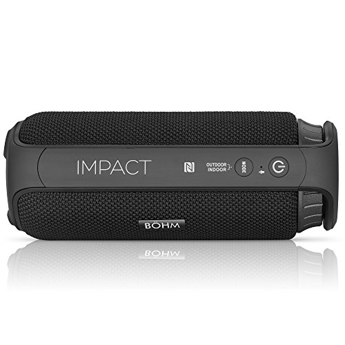 -. Binding : Electronics -. Brand : BÖHM -. EAN : 0852661666015 -. Feature : STUNNING SOUND: Don't be deceived by its compact design, this speaker is loud! Get rich, distinctive, beautiful sound with a heart-pounding bass. The speakers are curved to create an all-around, balanced ambiance. It is the perfect device to create the perfect mood. / INDOOR/OUTDOOR MODE: Environmental obstacles such as wind, humidity and the lack of reflective surfaces prevent ordinary speakers from producing good quality sound when taken outdoors. However, take these cool speakers to the pool, beach, or on a picnic and its outdoor mode will pump the bass and extend its sound reach to ten meters. On indoor mode, simply place it in the center of a room and the sound will fill every corner. / SMART DESIGN: Connect to your device via bluetooth, NFC, or using the included AUX cable and enjoy over seven hours of playtime on a 4-5 hour charge. Swipe the touchscreen to switch tracks and rotate the wheel to adjust volume. / HANDS-FREE MODE: Featuring a multifunction/power button, built-in microphone, touchscreen & wheel controllers so you can take calls, adjust volume or switch tracks all with a tap of a finger. / WATER RESISTANT: Safe from beverage spills, sun showers and snow flurries, this water resistant speaker is ready to accompany you on all your adventures. -. IsEligibleForTradeIn : 1 -. Label : BÖHM -. Manufacturer : BÖHM -. Model : BA66000048 -. MPN : BA66000048 -. PackageQuantity : 1 -. PartNumber : BA66000048 -. ProductGroup : Speakers -. ProductTypeName : PORTABLE_AUDIO -. Publisher : BÖHM -. Studio : BÖHM -. Title : BÖHM IMPACT Water Resistant Portable Wireless Speaker w/ Bluetooth, NFC & AUX Connectivity -. UPC : 852661666015