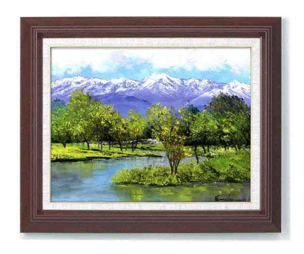 精魂こめて描いた迫力ある後立山連峰を、落ち着きのあるフレームに入れて。