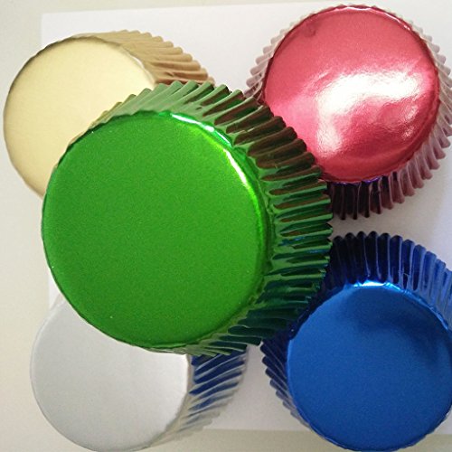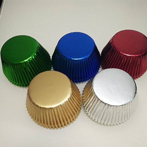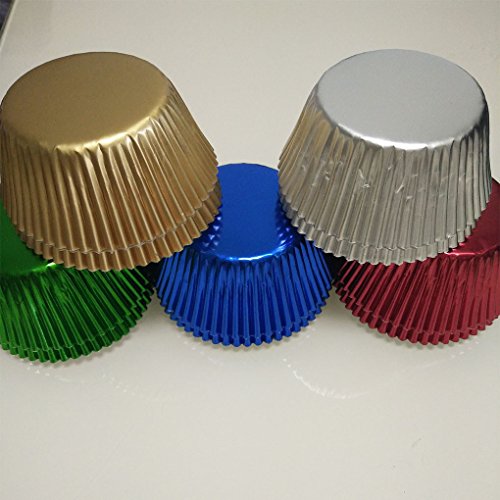 5 color mix Gold,Silver,Blue,Green,Red Foil Metallic Muffin Cupcake Liners Paper case Baking Cups 500 pcs,Standard Size