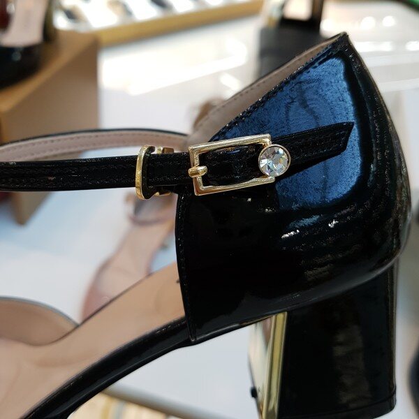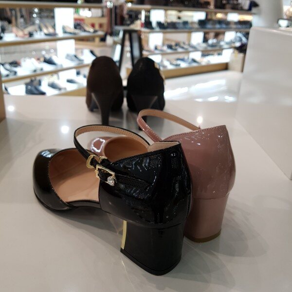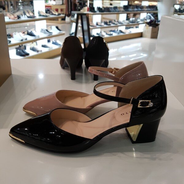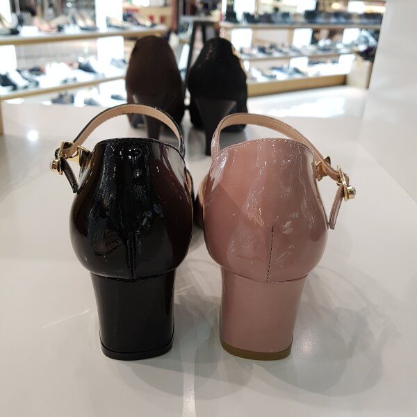 부드럽고 편안한 에나멜소재와 5센치높이의 넓은굽에 양쪽이 오픈된 메리제인 타입의 힐스타일로 편안함과 멋스러움을 동시에 충족시킬수있는 구두입니다 스커트뿐만아니라 청바지에도 잘어울려 데일리슈즈로적합한타입입니다