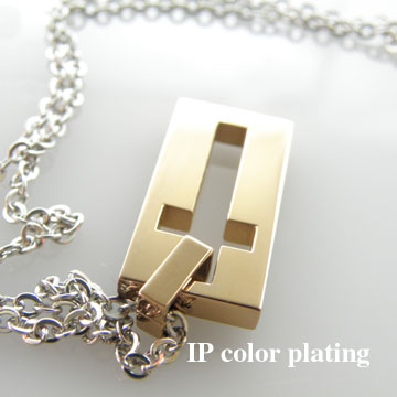 抜きクロスデザインのネックレスです。ピンクゴールドコーティングされている光沢のある表面が高級感を漂わせてくれます。左下に埋め込まれているWHITEジルコニアもポイント★