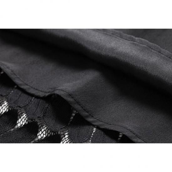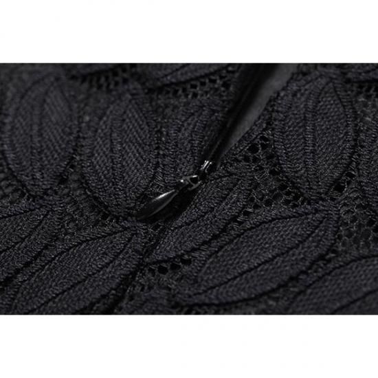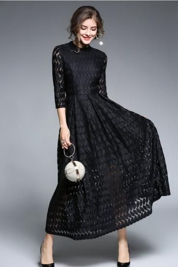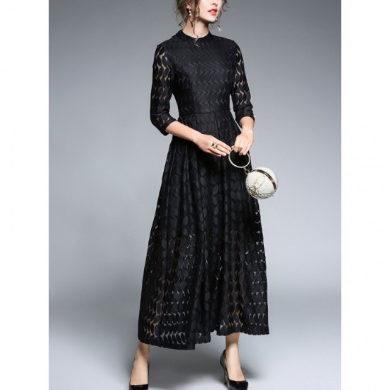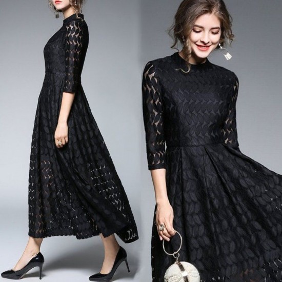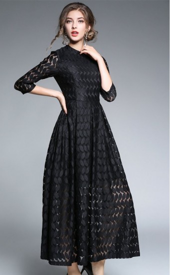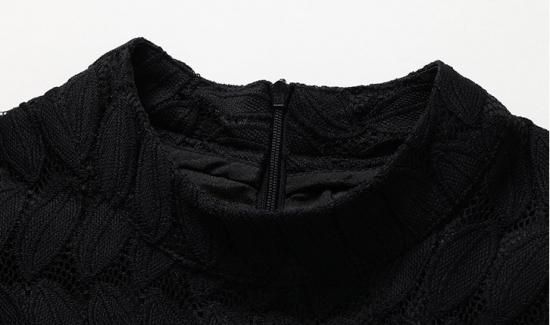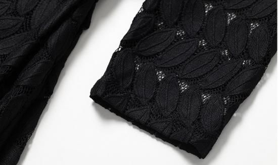 透け感がセクシーな、黒リーフレースのロング丈ワンピース。