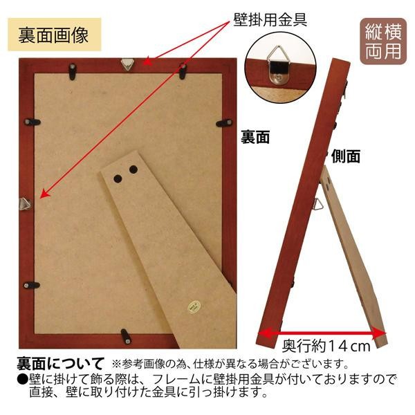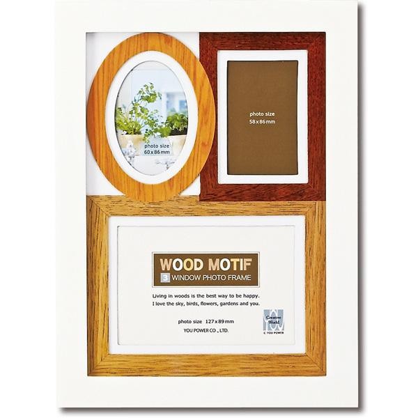 | 仕様 | ●壁掛・卓上両用(縦横両用) ●1mmホワイトペーパーマット・2mmウッドモチーフペーパーマット付 ●フォトサイズ:ミニサイズ2枚(60×86mm、58×86mm各1枚)、サービスサイズ(127×89mm)1枚 |
