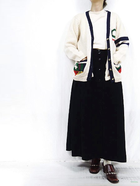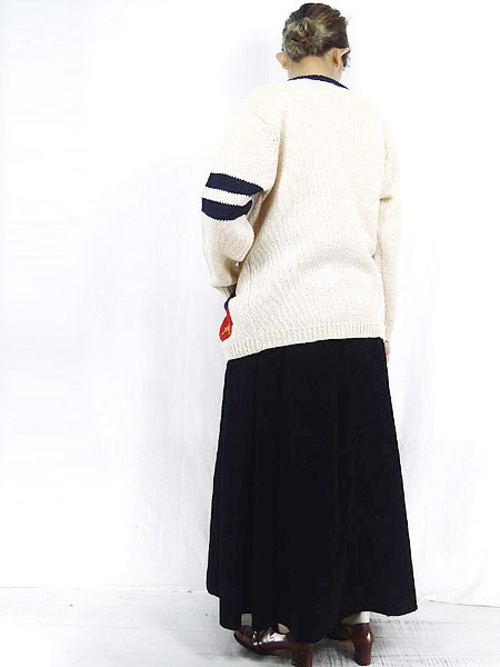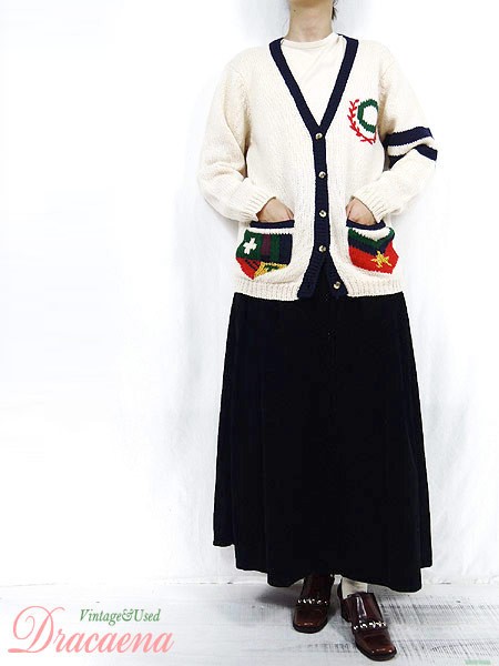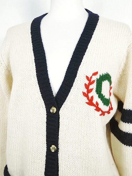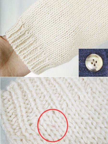 Ladies ブランド- カラーオフホワイト・紺 メール便不可 コンディション★★★ モデル- 素材ウール100% 表記サイズM スタッフコメント左袖口にヨゴレあり。 実寸サイズ 着丈 63.5 cm 身幅 49.5 cm 肩幅 39 cm 袖丈 53 cm ※ウエスト・ヒップ以外は平置き採寸