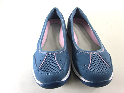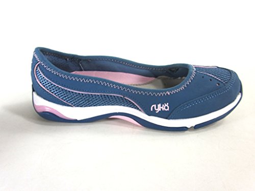 These flats by Ryka feature a leather/fabric upper - stretch elastic goring - breathable mesh fabric - cushioned insole - molded outsole
