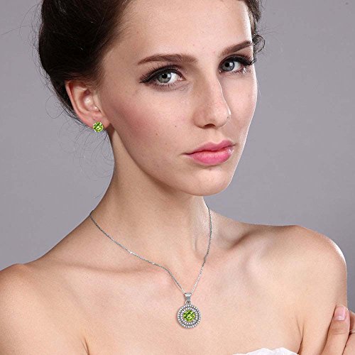 -. Title : 3.34 Ct Round Natural Green Peridot 925 Sterling Silver Pendant Earrings Set
