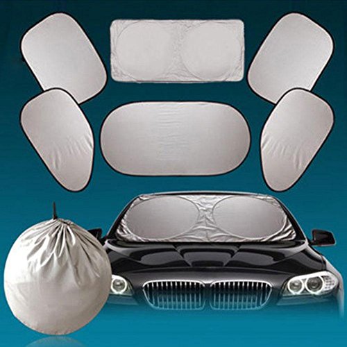 -. Feature : 1.This car sunshade is made from High Quality Nylon Polyester Material, Thicker than Most Similar Sunshades Out There! / 2.Keep your interior looking good, our sun shade protects your vehicle from UV damage, Its awesome! No more cracking or fading just all around solid protection, so you can maintain the integrity of your interior for years to come! / 3.It's easy & convenient to use, a retractable style that folds down into a sleek pouch. Very nice! Now you will be able to easily store your sun shade without any hassle! / 4.The great thing about our sun shades is that they fit really well with windshields .Good for SUV's, Trucks, , and Cars, we recommend our customers to measure first before purchasing, its very simple! / 5.Package Include:6pcs/set 1* Front Sunshade 1* Back Sunshade 4* Side Sunshade