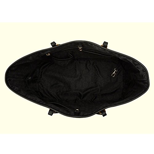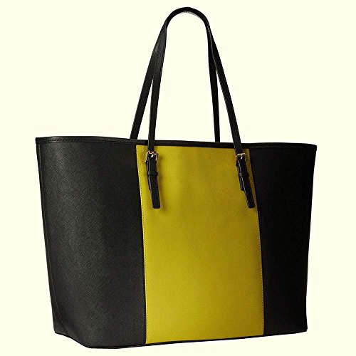 MICHAEL Michael Kors Medium Jet Set Centerstripe Travel Tote in Black/Apple Green