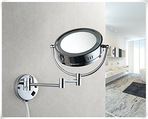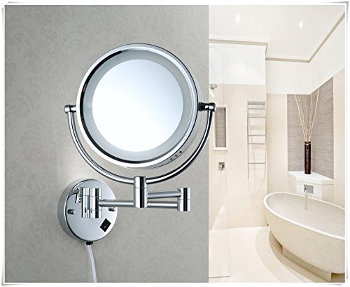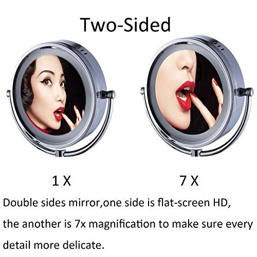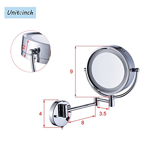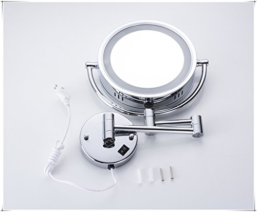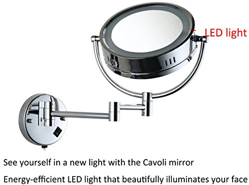 Cavoli Makeup Mirror with LED Lighted Wall Mounted 7x Magnification,Chrome Finish (8.5-inch,7x)