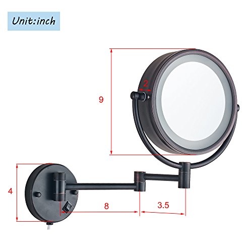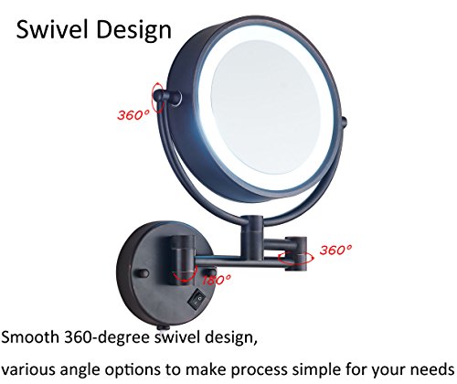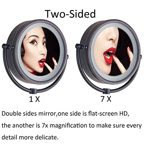 Cavoli Makeup Mirror with LED Lighted Wall Mounted 7x Magnification,ORB Finish (8.5-inch,7x)