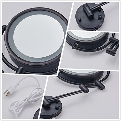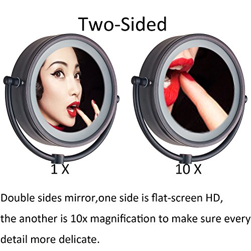 Cavoli Makeup Mirror with LED Lighted Wall Mounted 10x Magnification,ORB Finish (8.5-inch,10x)