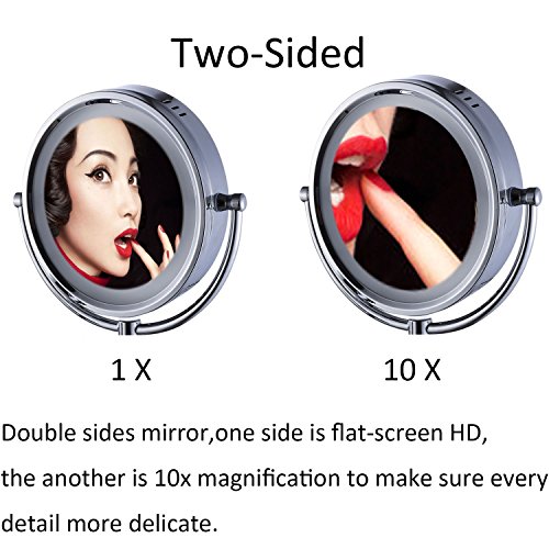 Cavoli Makeup Mirror with LED Lighted Wall Mounted 10x Magnification,Chrome Finish (8.5-inch,10x)