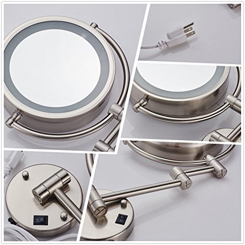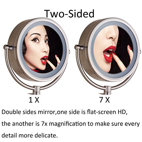 Cavoli Makeup Mirror with LED Lighted Wall Mounted 7x Magnification,Nickel Finish (8.5-inch,7x)