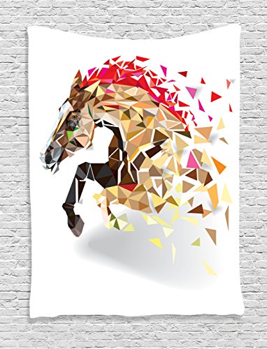 Diamond Decor Tapestry By Ambesonne, Disappearing Wild Horse In Digital Polygonal Geometric Modern Design Cubism Artwork, Bedroom Living Room Dorm Decor, 40Wx60L Inches, Tan Red Brown
