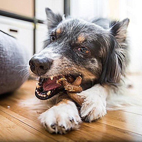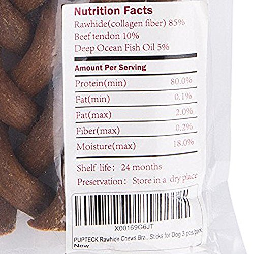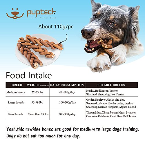 -. Feature : Size: 3 pcs/set, 7.5 inch bone-shaped rawhide chews for medium to large dogs.About 110g/pc / Material: Made from natural rawhide beef tendon and deep sea fish oil, no artificial colors or flavors / Healthy: Helps clean your pet's teeth, promotes healthy gums, and improves dog's breath / Beneficial: With a natural meaty flavor, will give your dog hours of chewing pleasure.It prevents dogs from chewing valuable items, provide your dog stimulation and help relieve anxiety. / Note: Dog rawhide doesn't digest easily, is great for dog training, can't eat too much as snack, especially puppies.