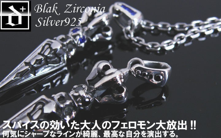 【SIZE】 W=9mm H=52mm(バチカン含む)   CZ(Black) 径=2.0mm×4 径=1.0mm×3 【素材】シルバー925