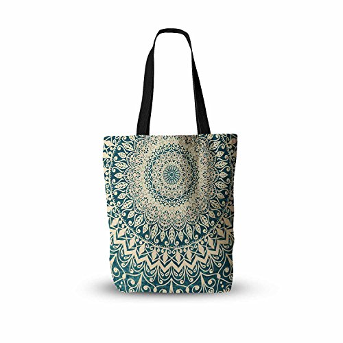 KESS InHouse Nika Martinez "Nature Boho Mandala" Green Multicolor Illustration Everything Tote Bag, 13" x 13", Multicolor