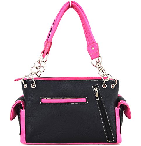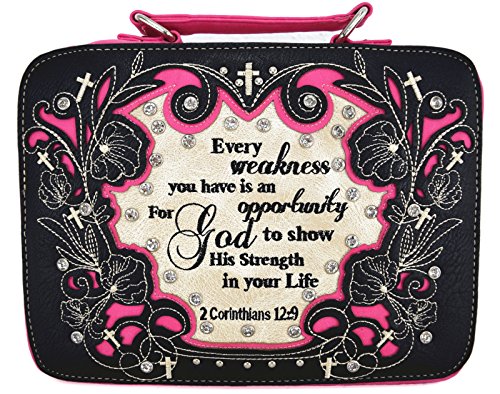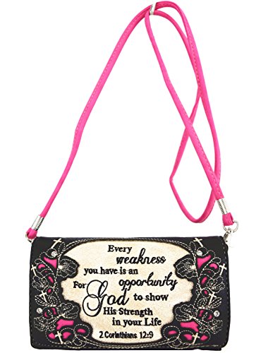 Title : Western Cowgirl Purse Handbag Cross Scripture Psalm Bible Cover Shoulder Bag Wallet Set Black Fuchsia