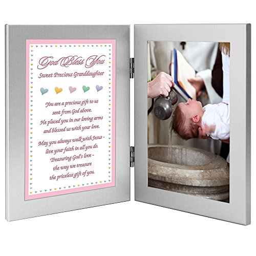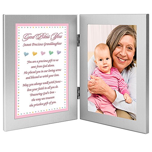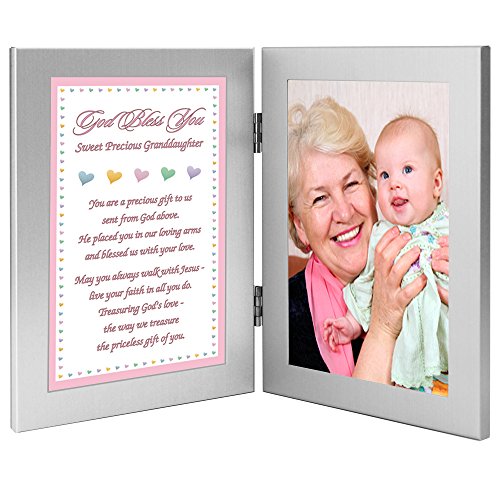 Two attached 4x6 inch frames - left frame contains a sweet poem - right frame has area for a 4x6 inch photo of your granddaughter that is inserted into frame after delivery