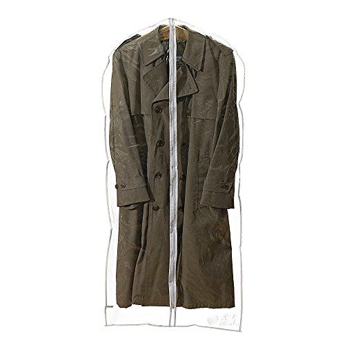 -. Feature : The garment bag protects your dresses, coats, suits and wedding gown from dust and the elements. / At 24 inches wide by 54 inches long, the storage bag is extra-long for dresses and formal wear. / A full-length zipper provides easy access so clothes won't become wrinkled while storing. / Clear bag protection with large gusset can hold up to two suits, which is great for travel. / Breathable, sturdy material has reinforced opening on top of bag for hangers so it won't tear.