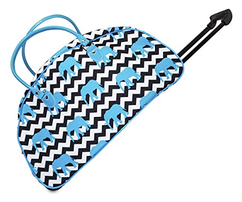 Product Description Stand out in style with this fun designer print style rolling duffle! This piece of lightweight luggage is great for jetsetters and can be used for a quick, close by staycation or for a weekend excursion to your favorite retreat. It's chic and fashionable design makes it a perfect choice for transporting gear for dance teams and cheer squads too! Easily glide through the TSA security checkpoint on inline skate wheels with your rolling suitcase for stress-free and efficient, stylish transport or you can carry your cute duffle by its included durable, detachable shoulder strap. Fully lined with black linen, keeping it clean is easy! Never lose your boarding pass, ID, or other smaller items with two exterior pockets on the front of this security checkpoint friendly bag. 0