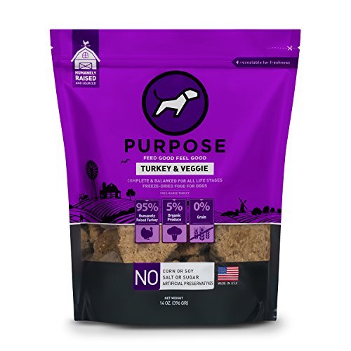 Purpose Freeze Dried Turkey & Veggie Dog Food is passionately prepared for your pet's nutritional needs. Our Turkey comes from humanely raised, free-range that are never administered antibiotics or hormones, as nature intended.