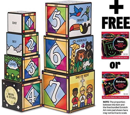 -. Binding : Toy -. Brand : Melissa & Doug -. EAN : 9899999505204 -. Feature : ONE FREE Melissa & Doug Scratch Art Mini-Pad is bundled with this item. The style of the mini-pad you receive is randomly picked. The Scratch Art Mini-Pad is considered a FREE bundled item. If you return this item, please return it as well. / Religious-themed stacking and nesting blocks / Blocks stack up uo 28 inches (71cm) tall. / Features scenes from the creation story. Add inspiration to playtime! / Promotes fine motor skills and early familiarity with Bible stories. For age 2+. -. Label : Melissa & Doug -. Manufacturer : Melissa & Doug -. Model : BCC9505204 -. MPN : BCC9505204 -. PackageQuantity : 1 -. PartNumber : BCC9505204 -. ProductGroup : Toy -. ProductTypeName : TOYS_AND_GAMES -. Publisher : Melissa & Doug -. Studio : Melissa & Doug -. Title : Days of Creation Stacking and Nesting Blocks Set + FREE Melissa & Doug Scratch Art Mini-Pad Bundle [27779]