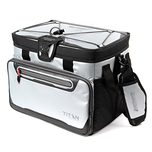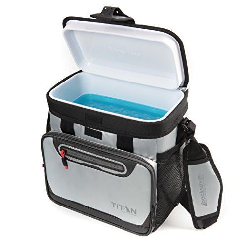 The Titan 16 can zipper less cooler still has ice after 2 days! deepfreeze high performance insulation with Radiant heat barrier and a triple layer cold block base combine to create superior cooling. There is a "flip-open", patented zipper less lid that provides quick access to food and drinks and an insulated front pocket. The Rhino-Tech exterior is tough, water resistant and Wipes clean easily. The interior features a durable Hard Body liner with Smart Shelf. The Smart Shelf allows you to keep hard stuff like drinks separate from soft stuff, so sandwiches and other soft foods don't get crushed. If you want to use the entire liner, the Smart Shelf easily removes to provide one large compartment. Designed for convenience and usability, this cooler also features an adjustable back saver shoulder strap with shoulder pad that centers load weight to reduce muscle stress.Feature