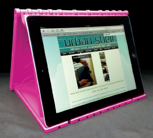 - Feature : Space saving bedside storage system for your essential . Can also be wall mounted as a fold away shelf. / Doubles as an iPad, Kindle, NOOK, tablet stand for tables, counters, laps & airplane trays (Not intended to hold iPad in bedside table mode) / Portable & lightweight: Folds flat to only 1/2" thick. No assembly required / Convenient cord holders: Ideal for iPhone / Android / Blackberry / tablets / e-readers / Contemporary design blends with any décor while sturdy high grade ABS plastic construction ensures long life - Available in Black, White, Pink, or Blue - Made in USA