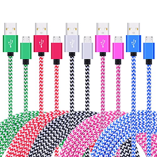 -. Feature : Faster Charging - Micro USB cable charges and syncs your device at high speed data transfer up to 480Mbps, Extra long 6ft MicroUSB cable is convenient to use while in bed, a car, a hotel room and even the office. / Superb Durability - Design with Nylon Fiber cloth jacket and precisely layer-welded connectors, and the Nylon Braided cable has 10000+ bend test, make the cord more durable and sturdier than other cords. / Ideal Charge & Sync - Premium copper wires support high-speed charge 8% faster than most standard alternatives and error-free data transfer up to 480 Mbps via USB 2.0.You are able to save your charging time. / Universal Compatibility - Compatible with Kindle, Kindle Fire, Samsung Galaxy Tab, Galaxy Note3/4/5, Note Edge, Galaxy S3/S4/S5/S6/S6 Edge/S7/S7 Edge, Nokia Lumia, LG G4, most Android Tablets and Cell Phones, and Windows Phone (Not Compatible with Apple Devices) / What You Get: 5 X colorful nylon braided USB cables (Green, Blue, Rose red, Red, White ) with a lifetime Hassle-free Quality Guarantee