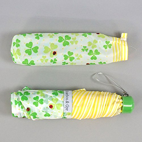 -. Title : アテイン 婦人用 軽量楽々ミニ折畳傘 親骨50cm クローバー&てんとう虫 グリーン 5176